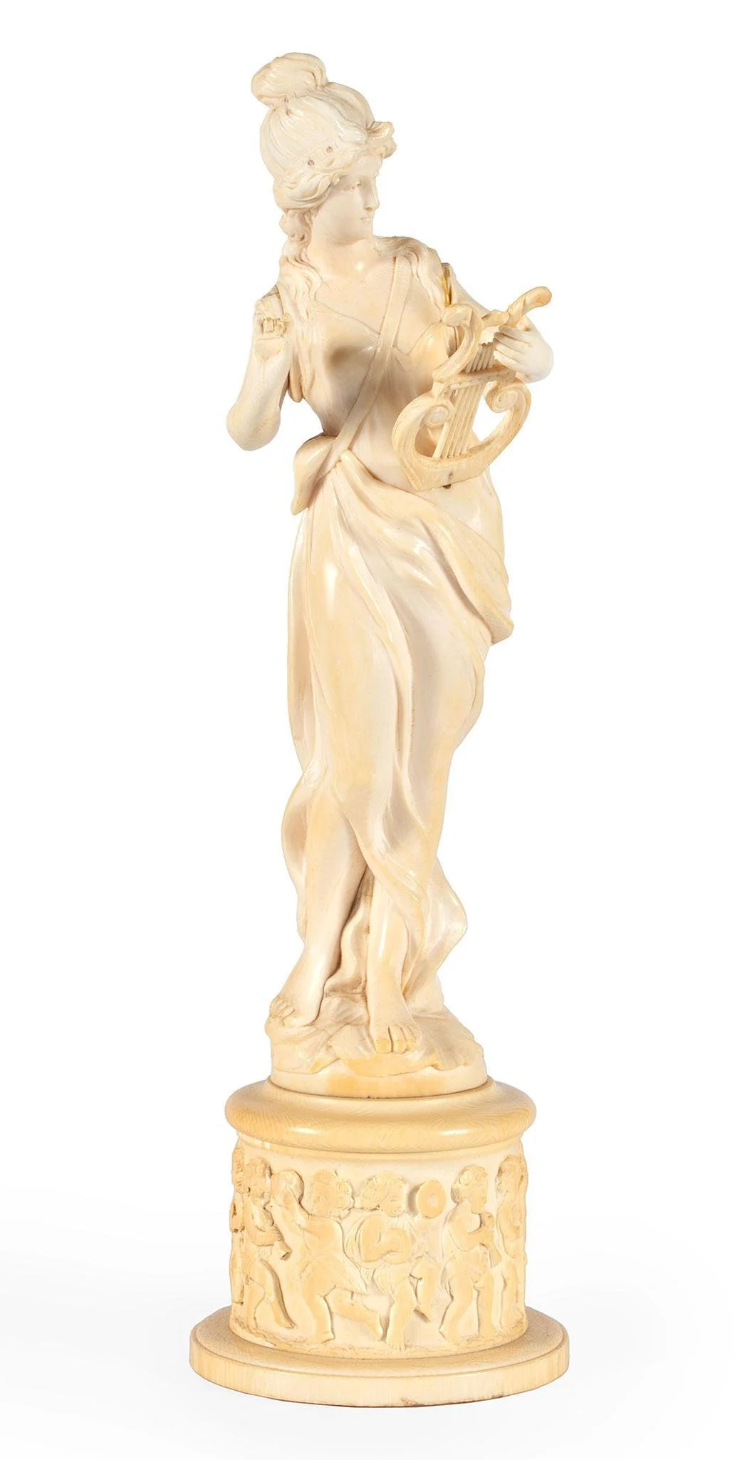 A Chinese Dehua blanc-de-chine figure of Guanyin, the seated Bodhisattva Guanyin wearing a long sleeved robe and chest adorned with jewels, figure right hand resting on knee while the left is supported with Ruyi scepter, central back with square He Chaozong impressed seal.